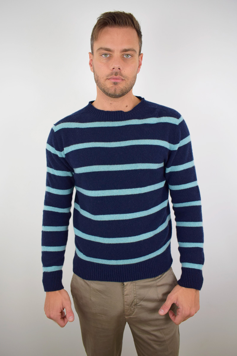 • Crewneck Sailor Pure Cashmere Men’s Blue Wisteria Stripes